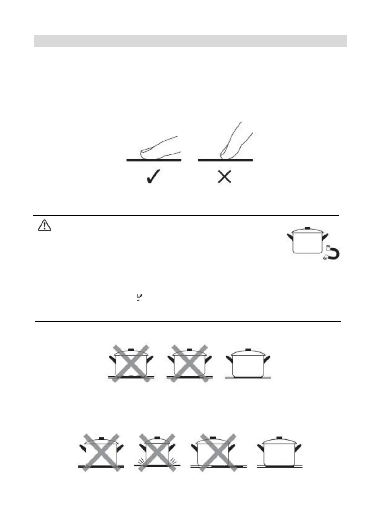 Győződjön meg arról, hogy az edény alja sima, felfekszik az üvegen, és ugyanakkora, mint a főzőzóna.
