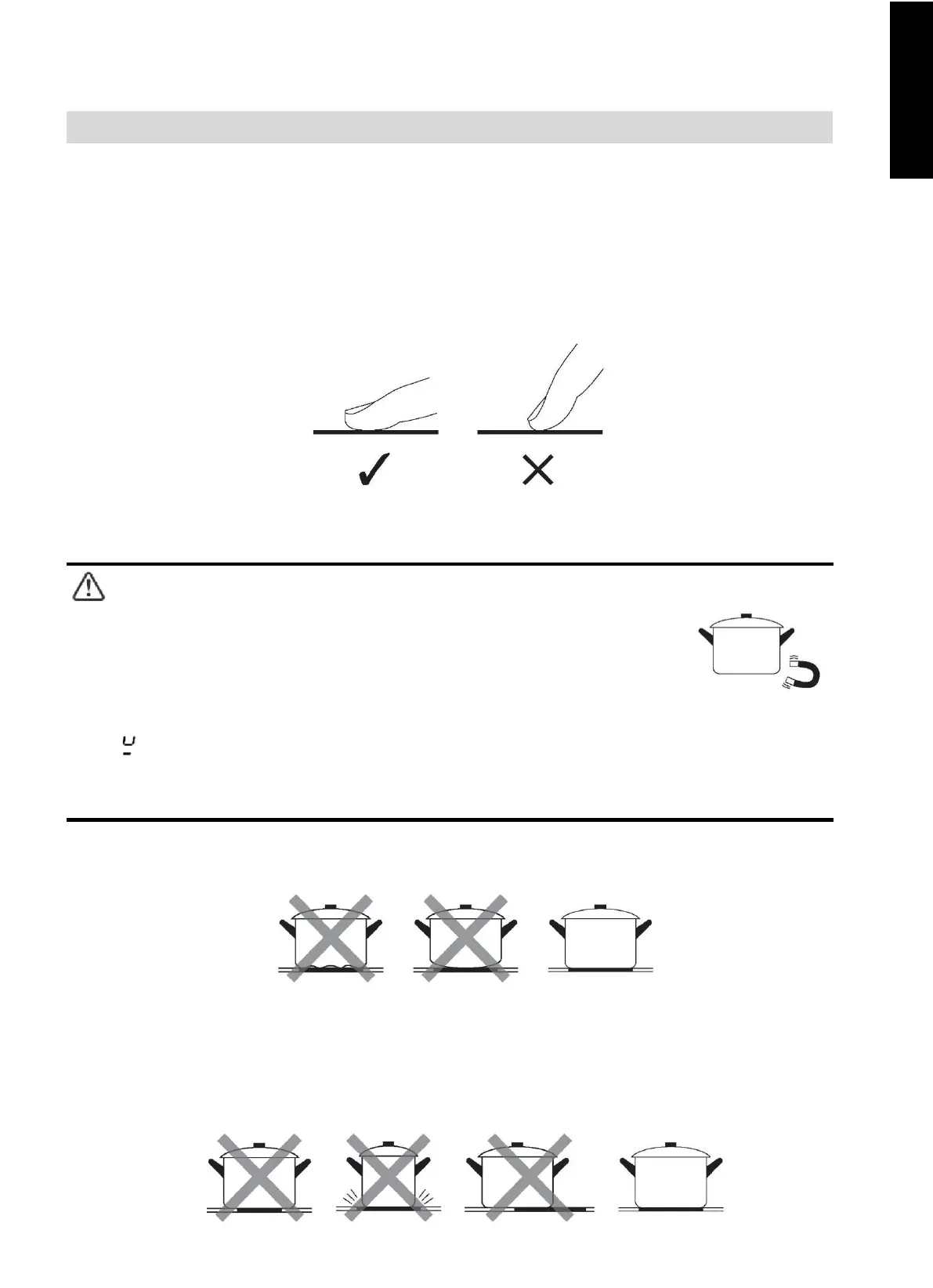 Mova um íman em direção à base da panela. Se for atraído, a panela é adequada