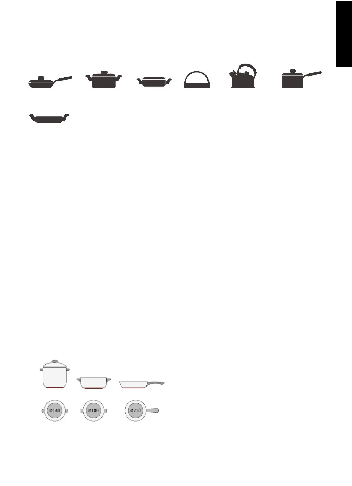 De acordo com a dimensão da zona, pode utilizar panelas de diferentes diâmetros, como ilustra