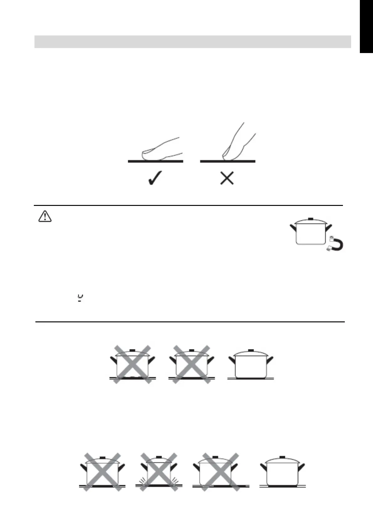 wird vom Kochfeld unter Umständen nicht erkannt. Stellen Sie den Kochtopf immer in die Mitte des
