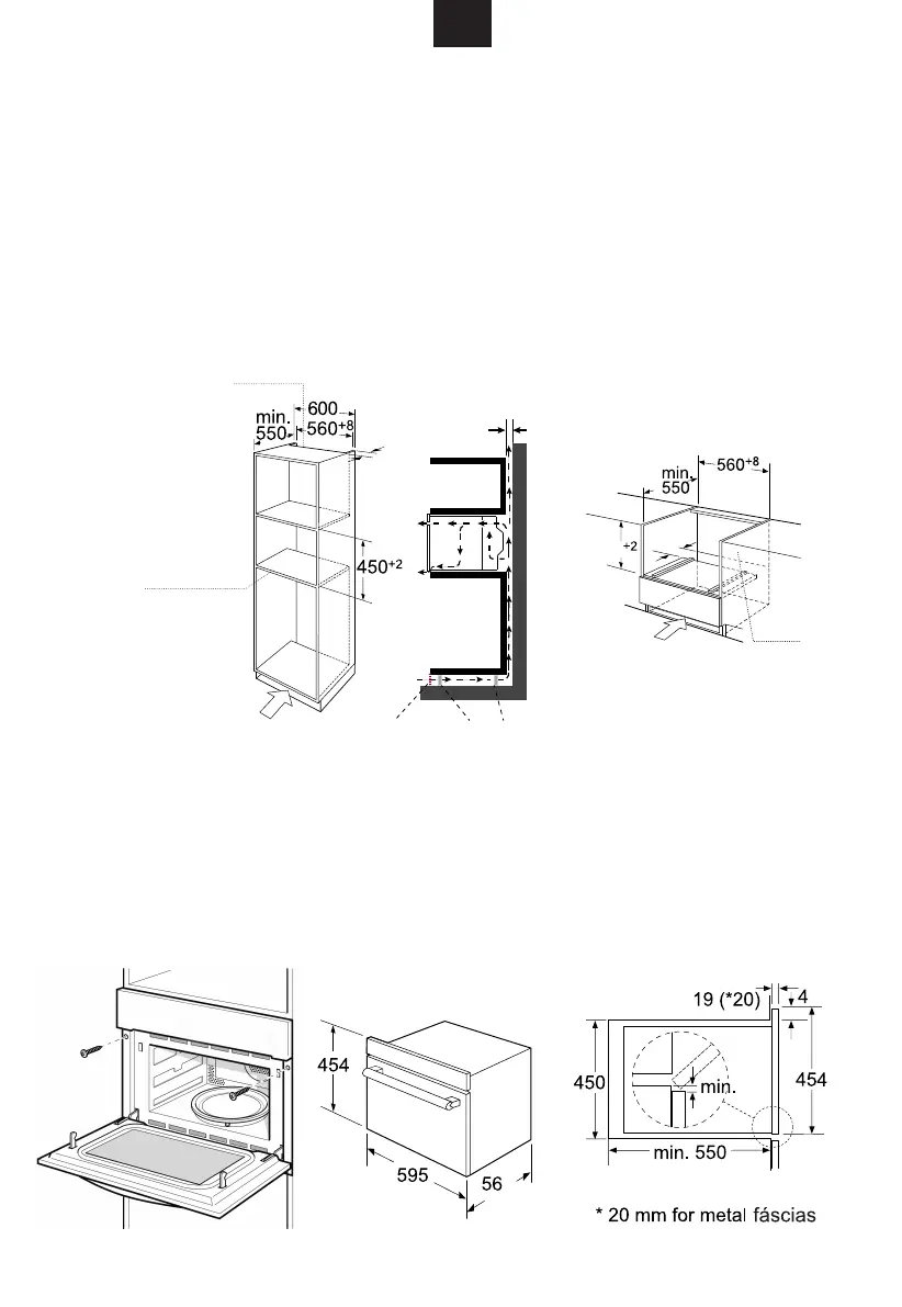 1. Insira cuidadosamente o forno microondas no espaço para o encastre, certificando-se de