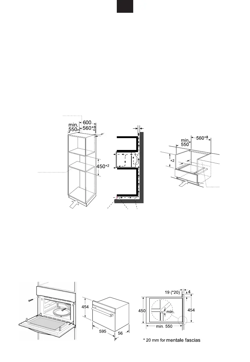 1. Poussez avec précaution le micro-onde dans la niche d’encastrement, verifiez qu’il soit