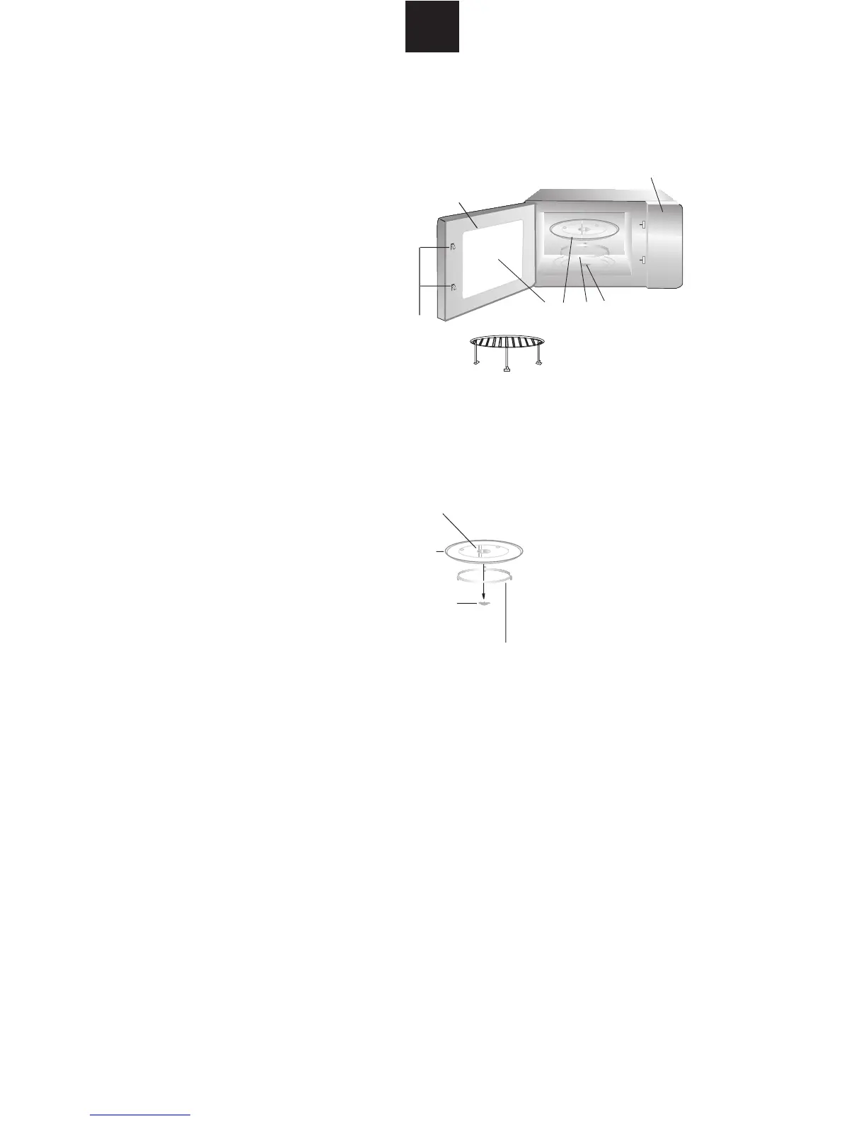 d. Si el plato de vidrio o el conjunto anillo plato giratorio se rajaran o se rompieran,