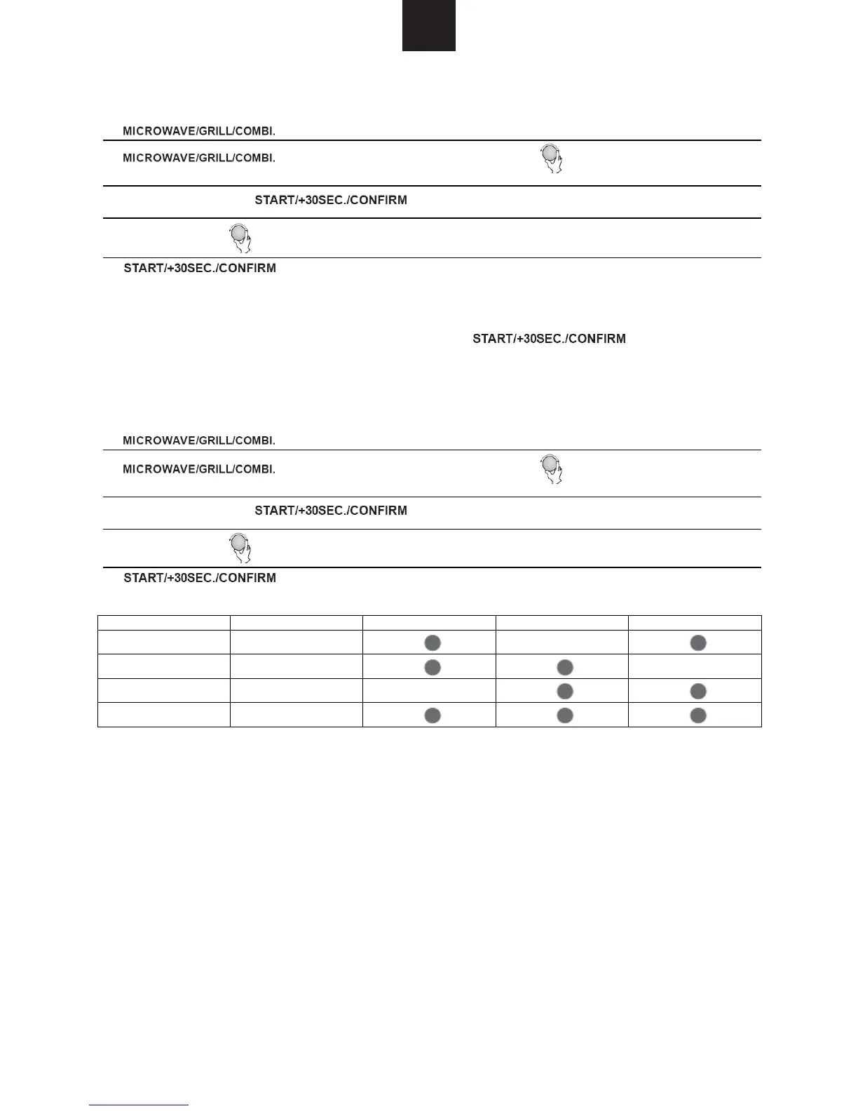 2) " " mehrere Male drücken oder den Wählschalter drehen, um die Grill-