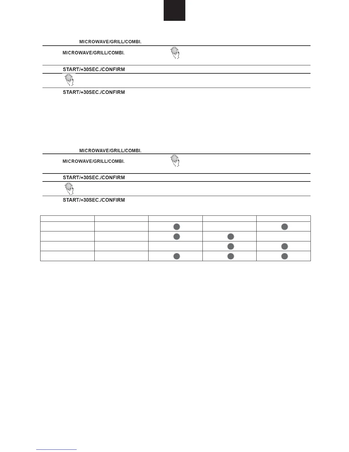 2) Pulse " " varias veces o gire " " para seleccionar la potencia del grill.