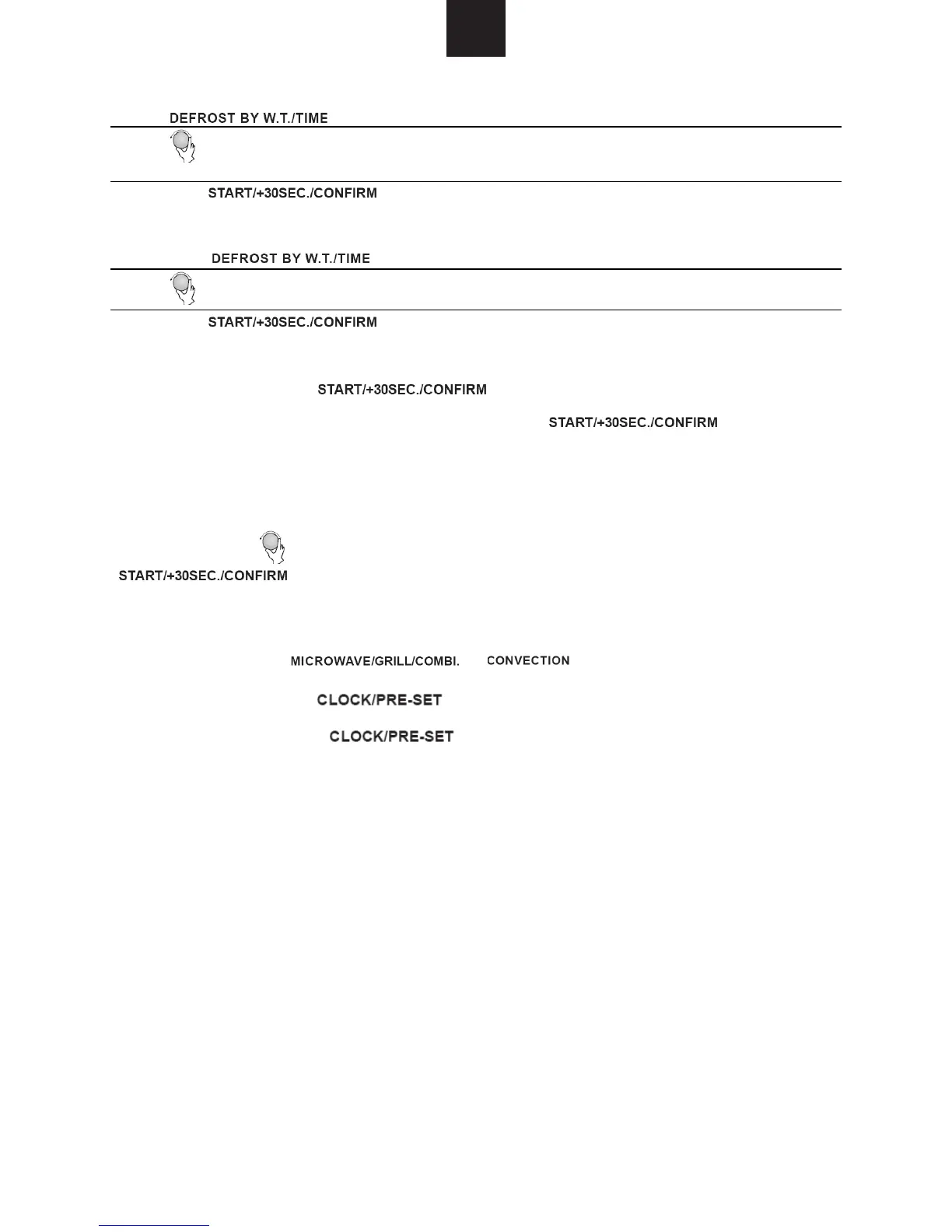 2) Durante los estados de microondas, grill, convección y combi, pulse la tecla " " para cocinar con un