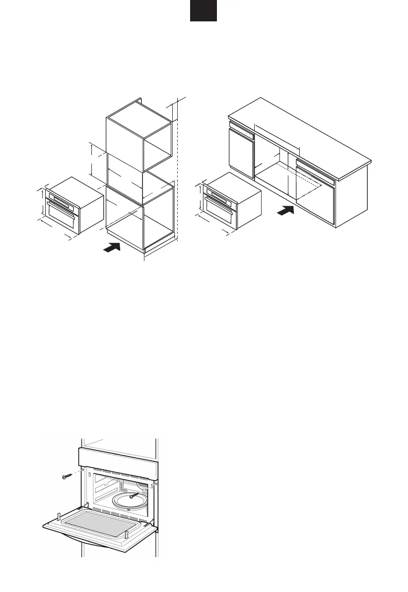 1. Wsunąć delikatnie kuchenkę do wnęki zabudowy, sprawdzić czy umieszczona jest centralnie we