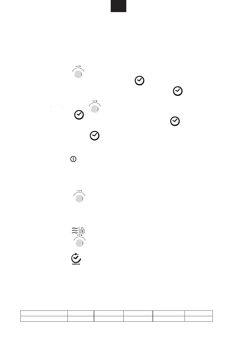 NOTA: il tempo di cottura può essere impostato utilizzando i seguenti incrementi: