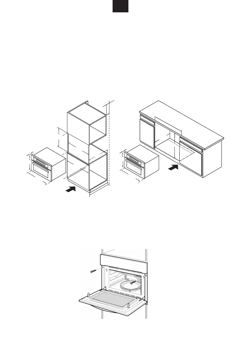 2. Abrir la puerta y ajustar el microondas con los tornillos que se aportan.
