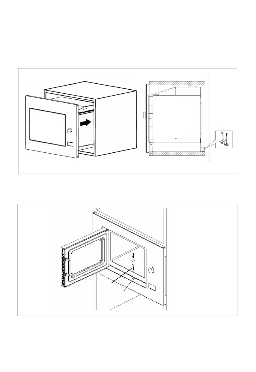 5. Abra la puerta, fije el horno al mueble con el tornillo B, en el agujero de