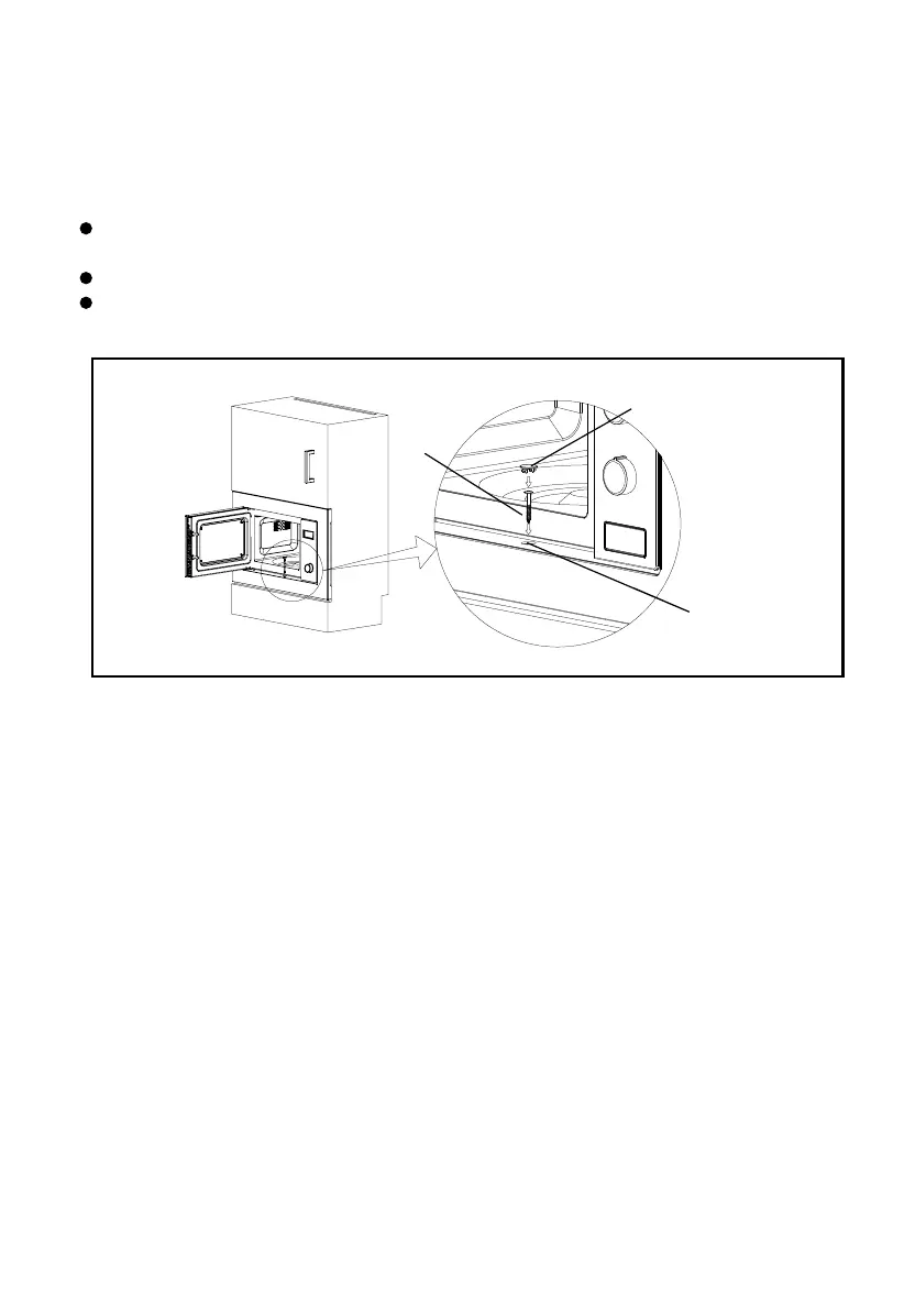 2. Open the door; fix the oven to the cabinet with SCREW B at t