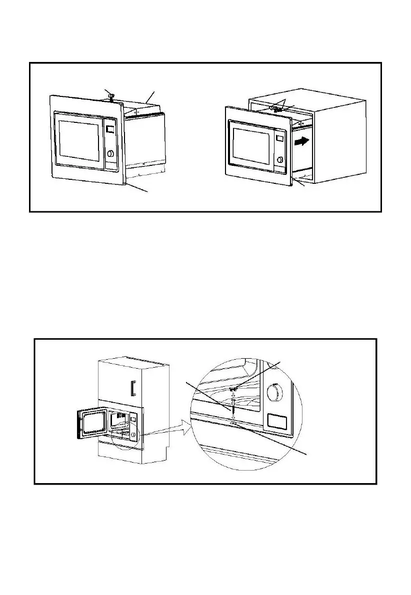 2. Aprire lo sportello e fissare il forno al mobile inserendo la VITE B nel FORO