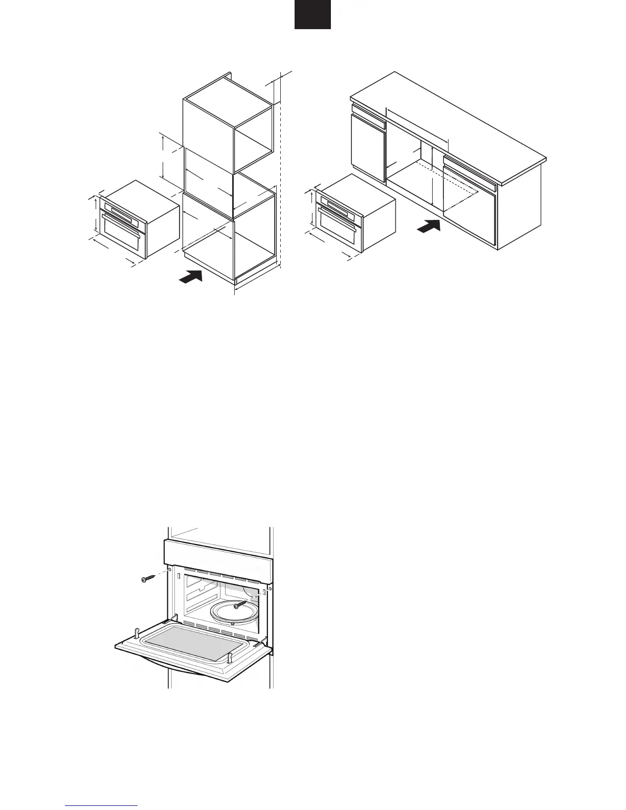 2. Open the door and fasten the micr owave with the sc ws that were supplied.