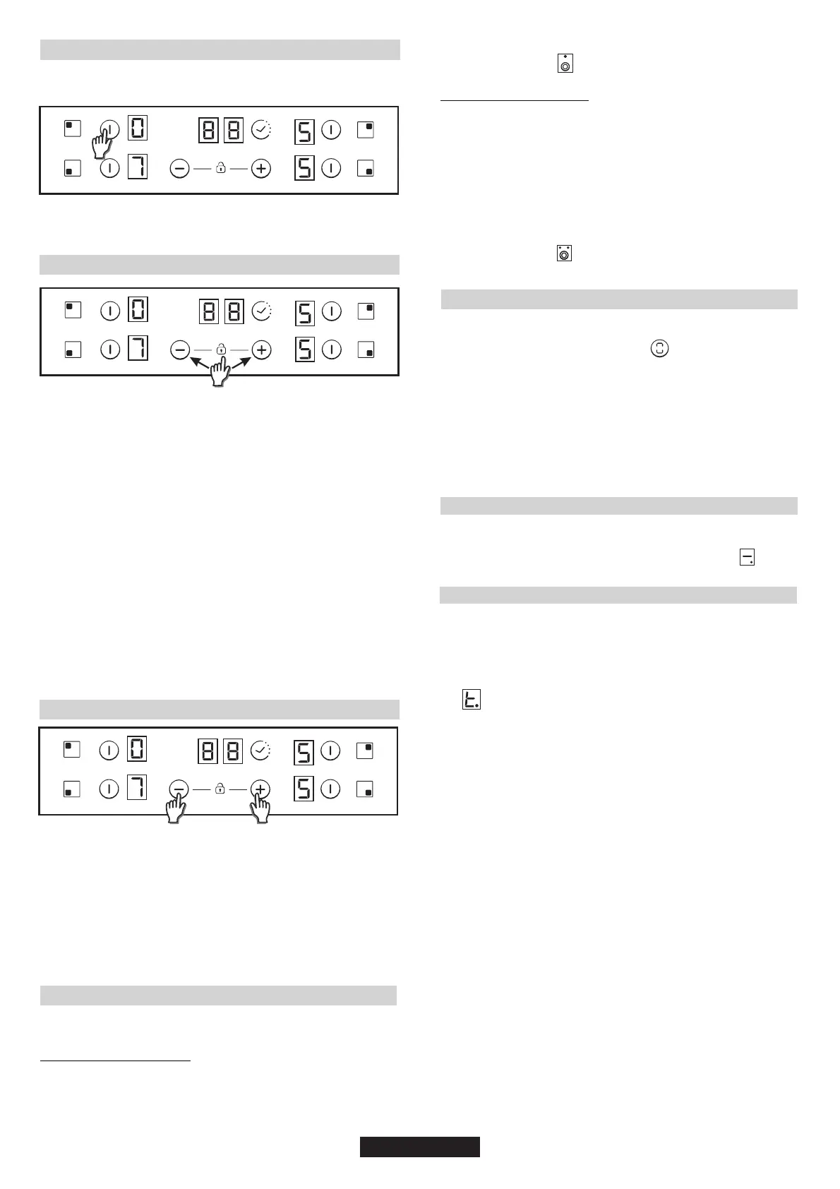 4. Amikor egy főzőzóna ki van választva, és a '+' és ''-' gombokat