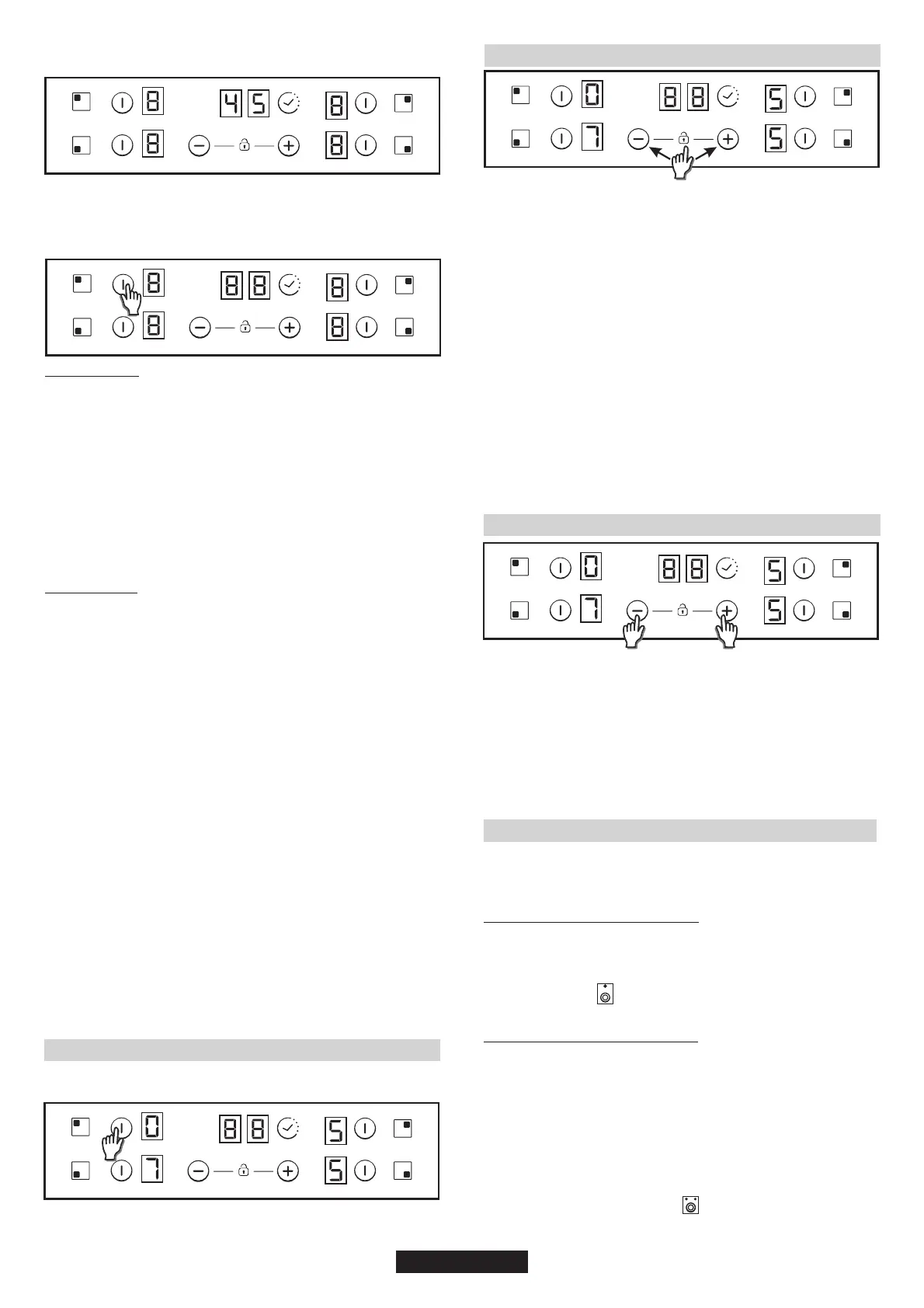екрані кожної конфорки за допомогою кнопок "+" чи "-". 0-1-2-3...9-