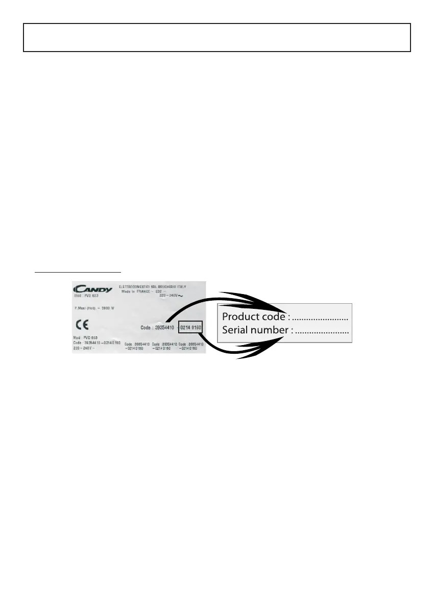 . Identification plate (located under the hob’s bottom casing)