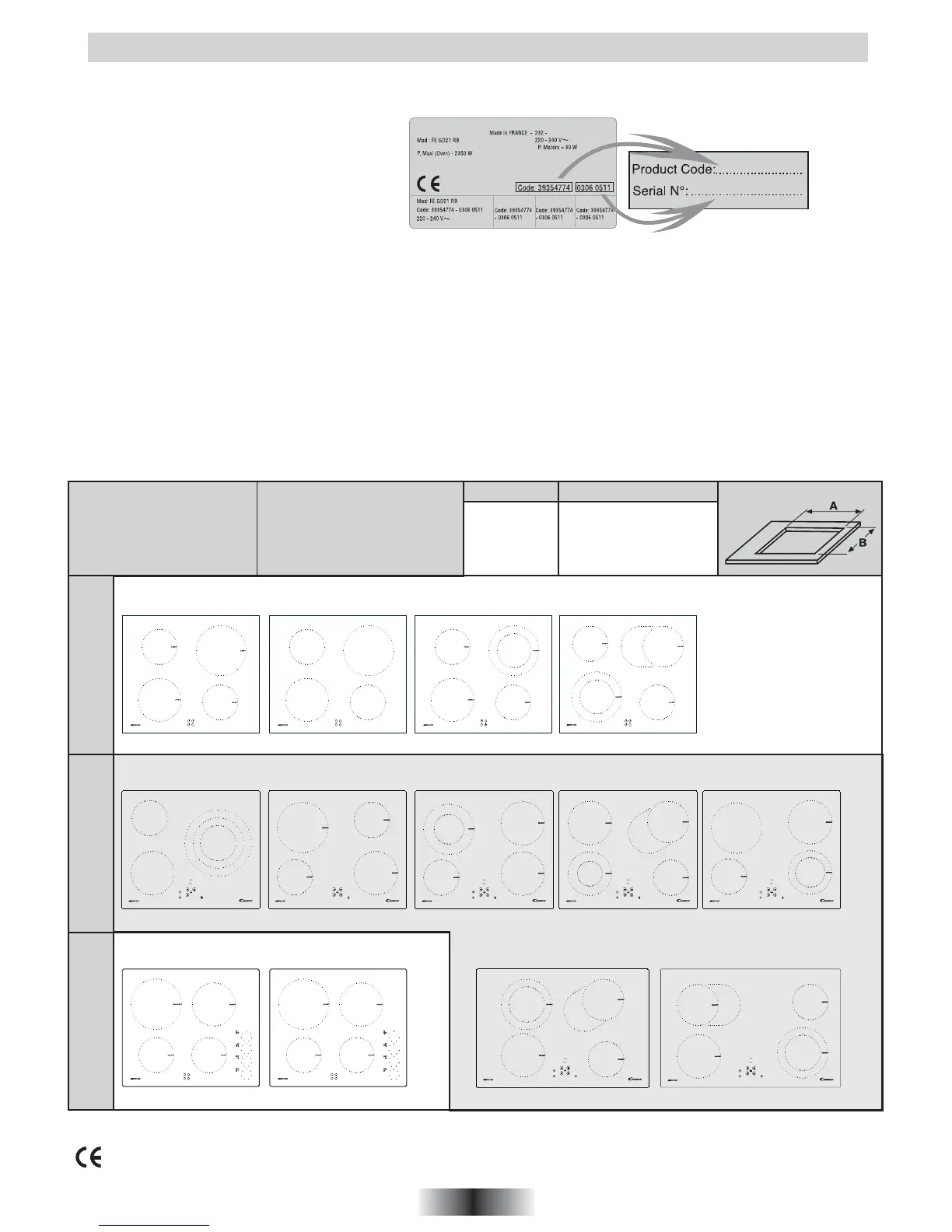 We recommend you keep the instructions for installation and use for later reference, and before installing the hob, note its serial number