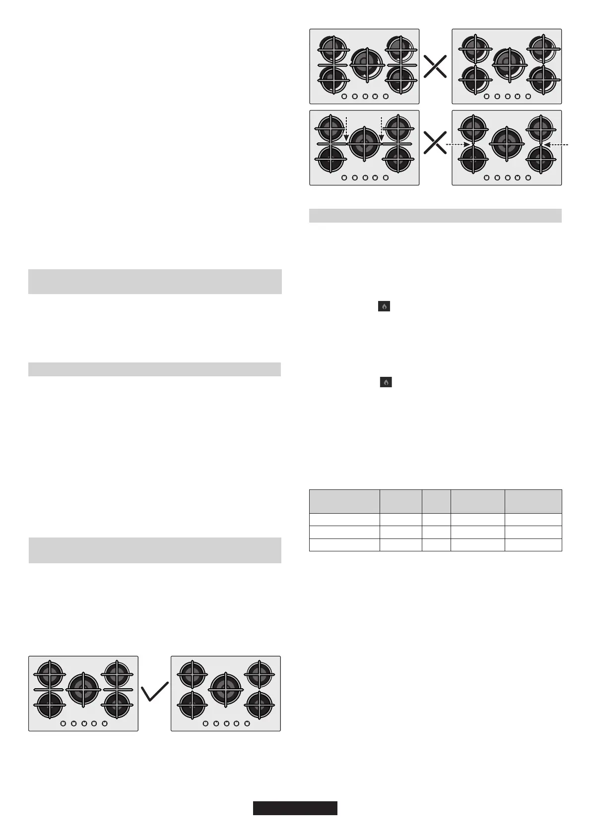 Pred zapnutím varnej dosky sa uistite, že horáky a viečka horákov sú