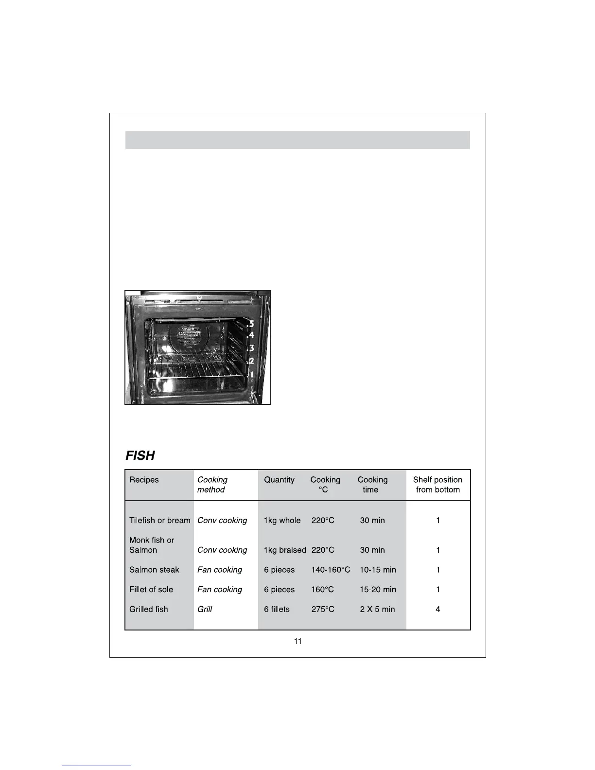 Temperatures and cooking times are given for information only to facilitate using the oven.