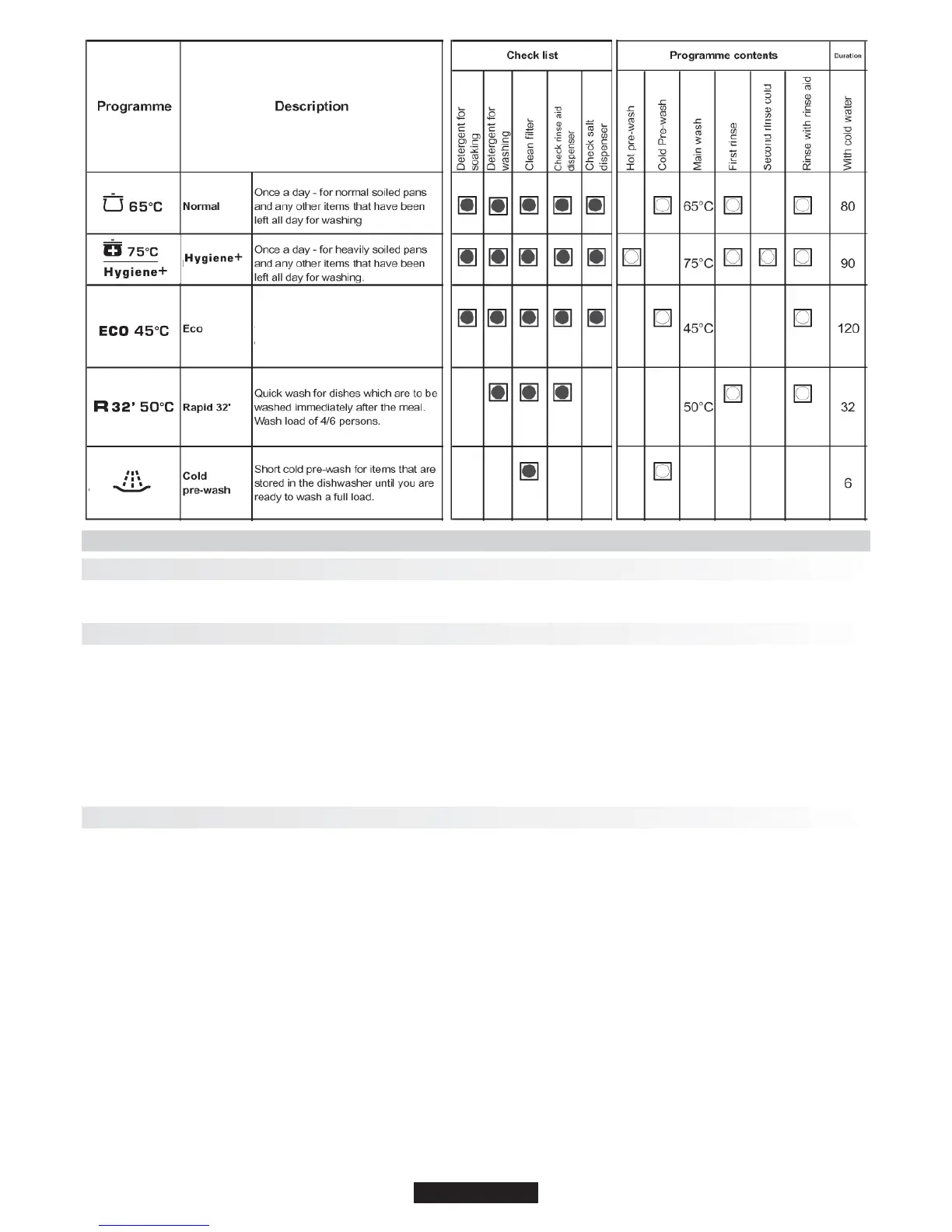 - To carry out a wash programme with a full load of dishes load the machine correctly after each meal and do a cold pre-wash between
