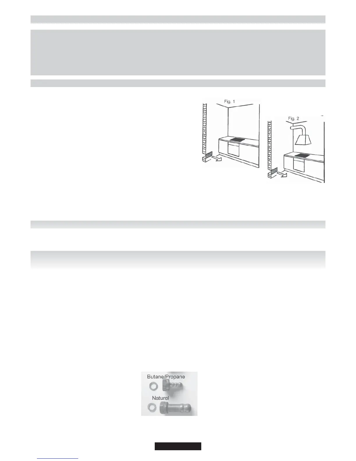 Dans tous les cas, prévoir sur la canalisation d'arrivée du gaz un robinet d'arrêt, un détendeur ou un détendeur déclencheur pour le gaz