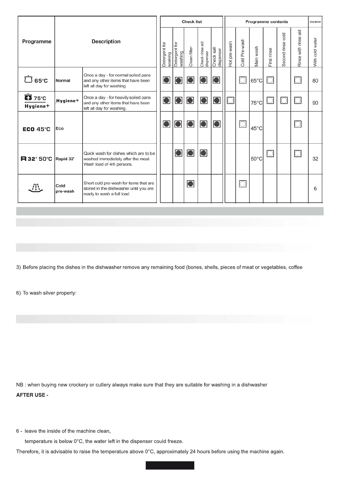 - To carry out a wash programme with a full load of dishes load the machine correctly after each meal and do a cold pre-wash between