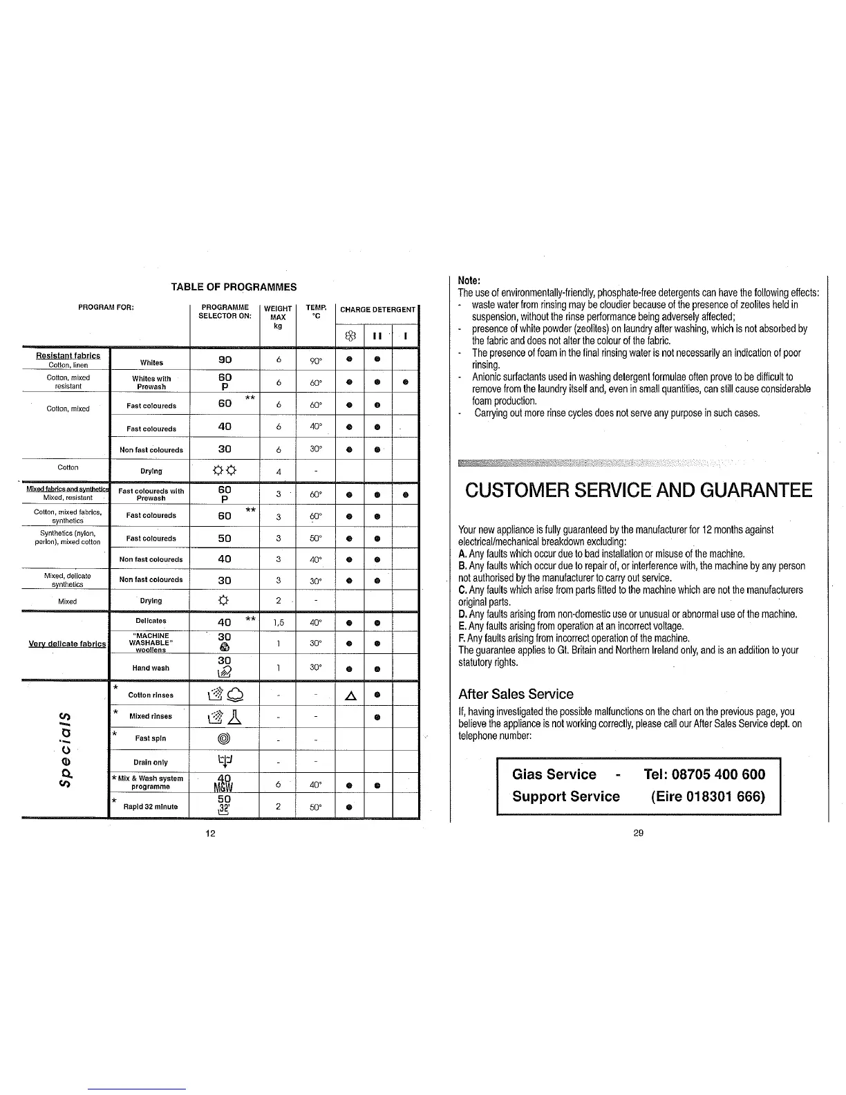 Candy Washer dryer - Customer Service and Guarantee