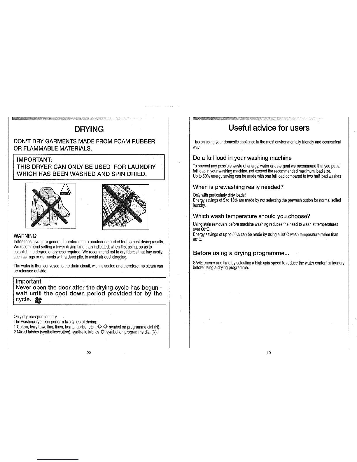 Candy Washer dryer - Drying Advice; Useful Advice for Users