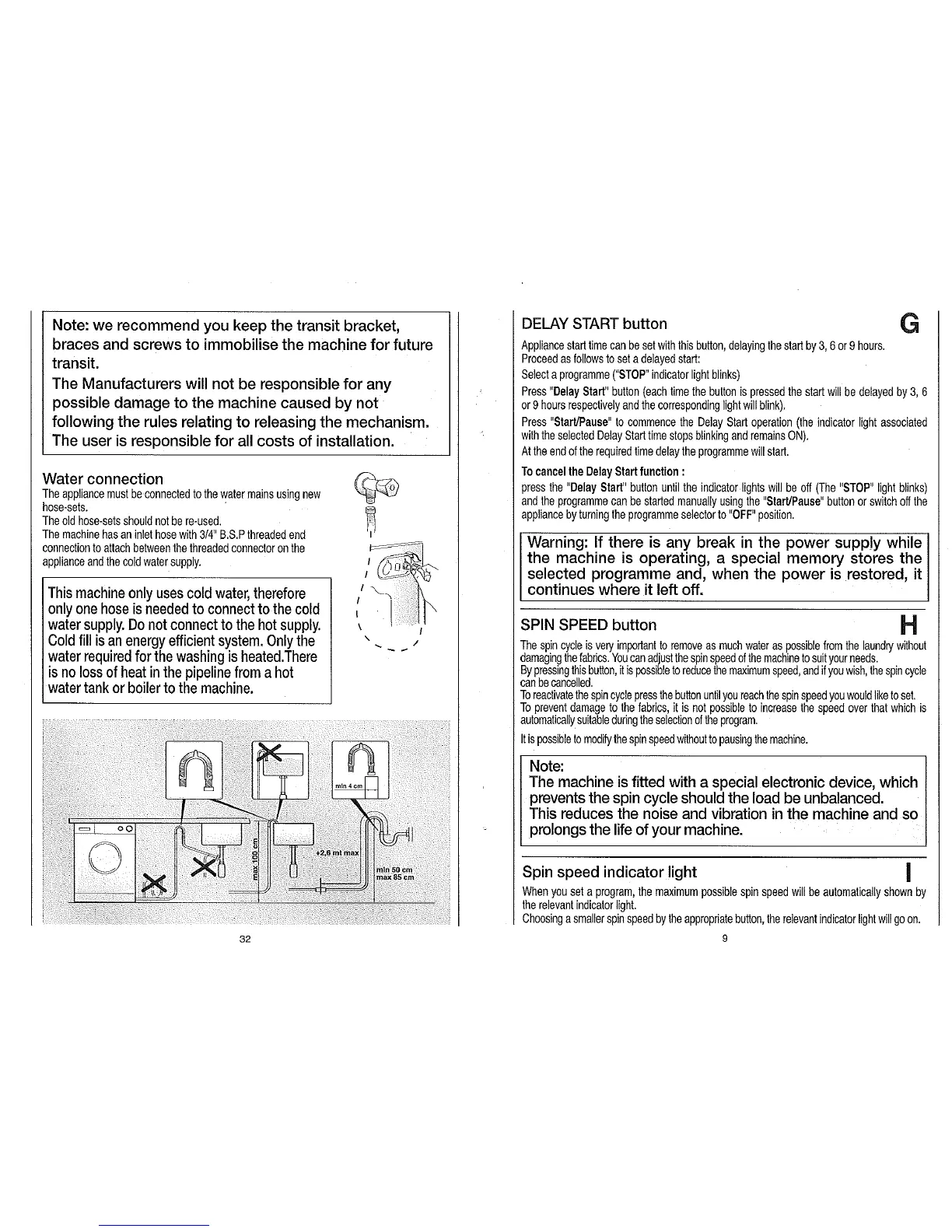 Candy Washer dryer - Water Connection; Delay Start Button; Spin Speed Button