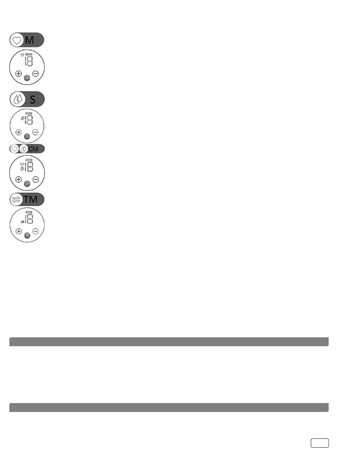 milk is stimulated and initiated. This mode is with 5 levels. Using the + (L+) and – (L-) buttons you can