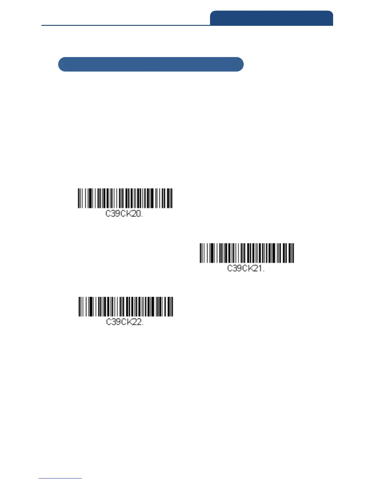 reads Code 39 barcodes with a check character, but will not transmit the check