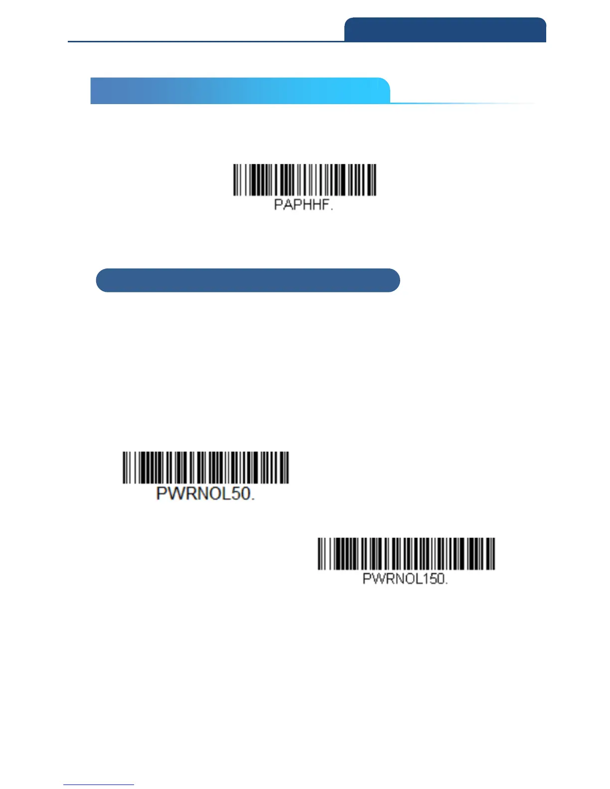 If you wish to set the illumination LED brightness, scan one of the barcodes