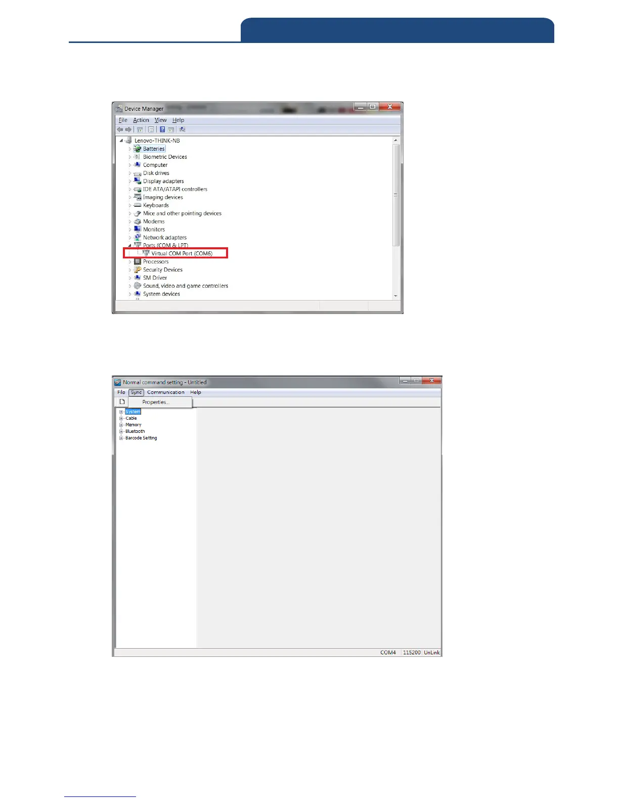 For example: The COM Port used by scanner is COM6