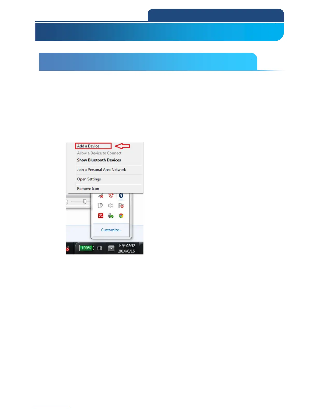 1. After connect with Dongle and PC, you will see Bluetooth sign in system display.