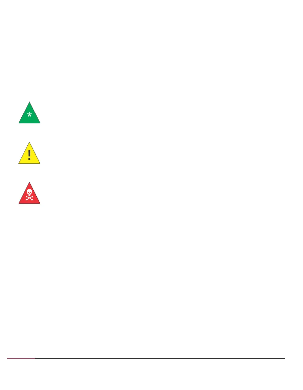Warnings alert the operator to conditions that may cause injury.