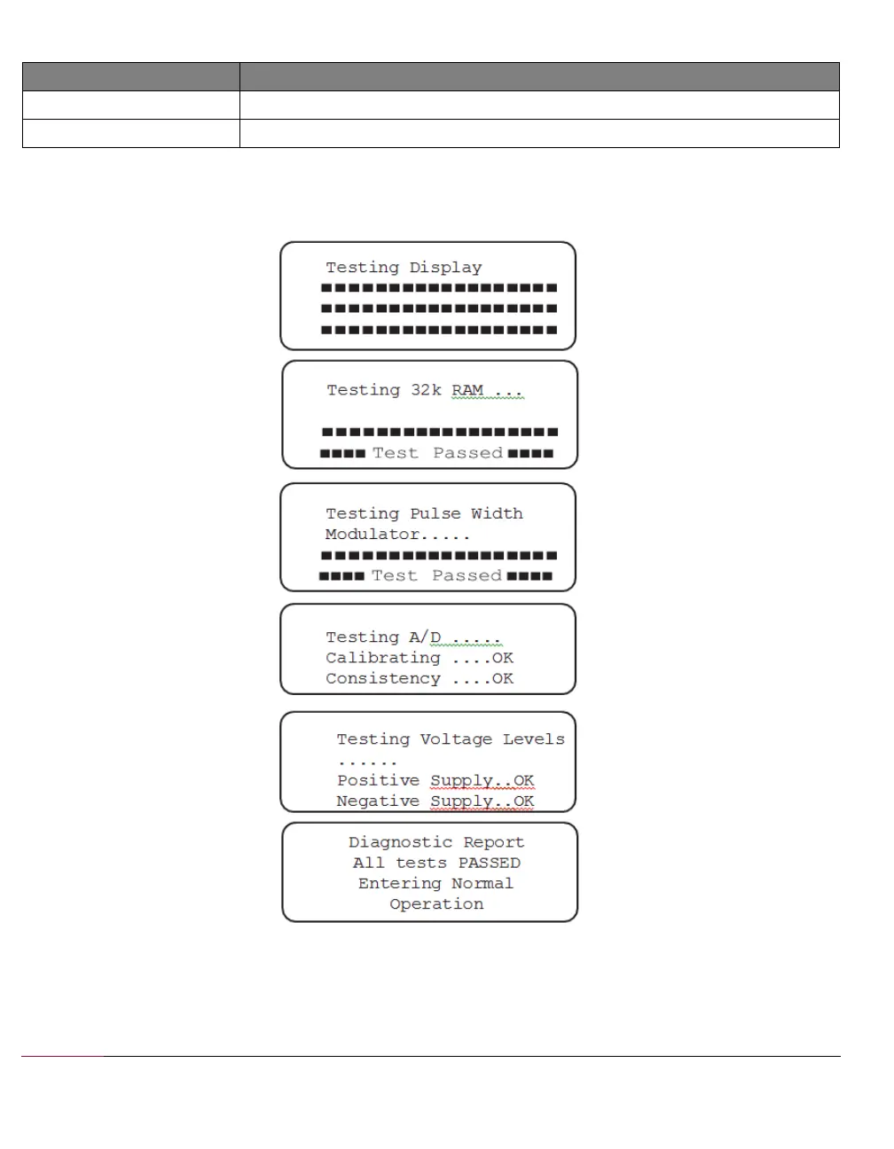 Figure 19 illustrates the LCD sequence for a normal self-test: