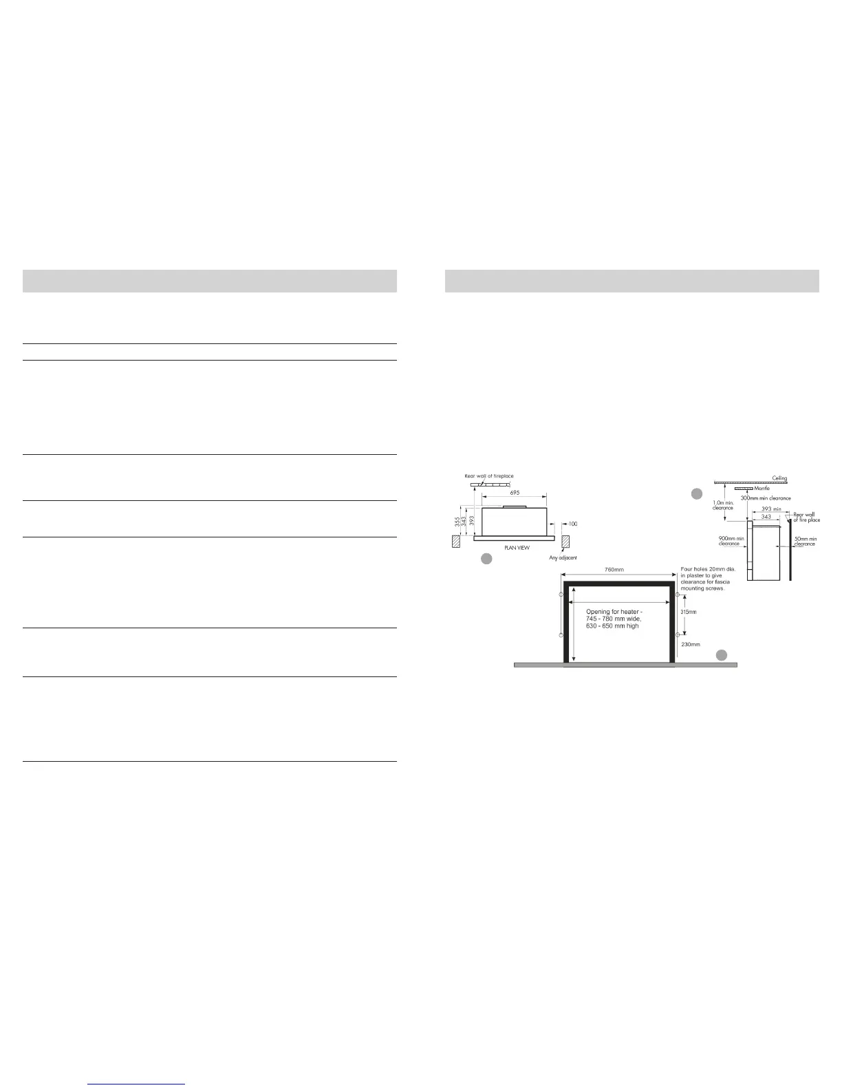 heater. For clearances to furniture and curtains refer to warning on page 5.