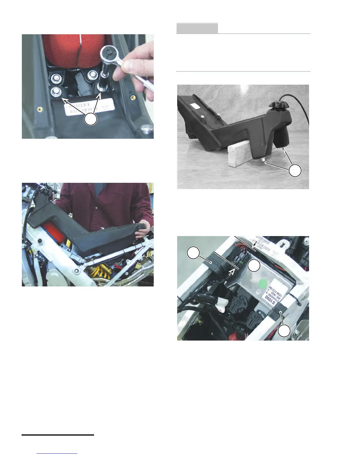 8. Remove the fuel tank mounting bolts.