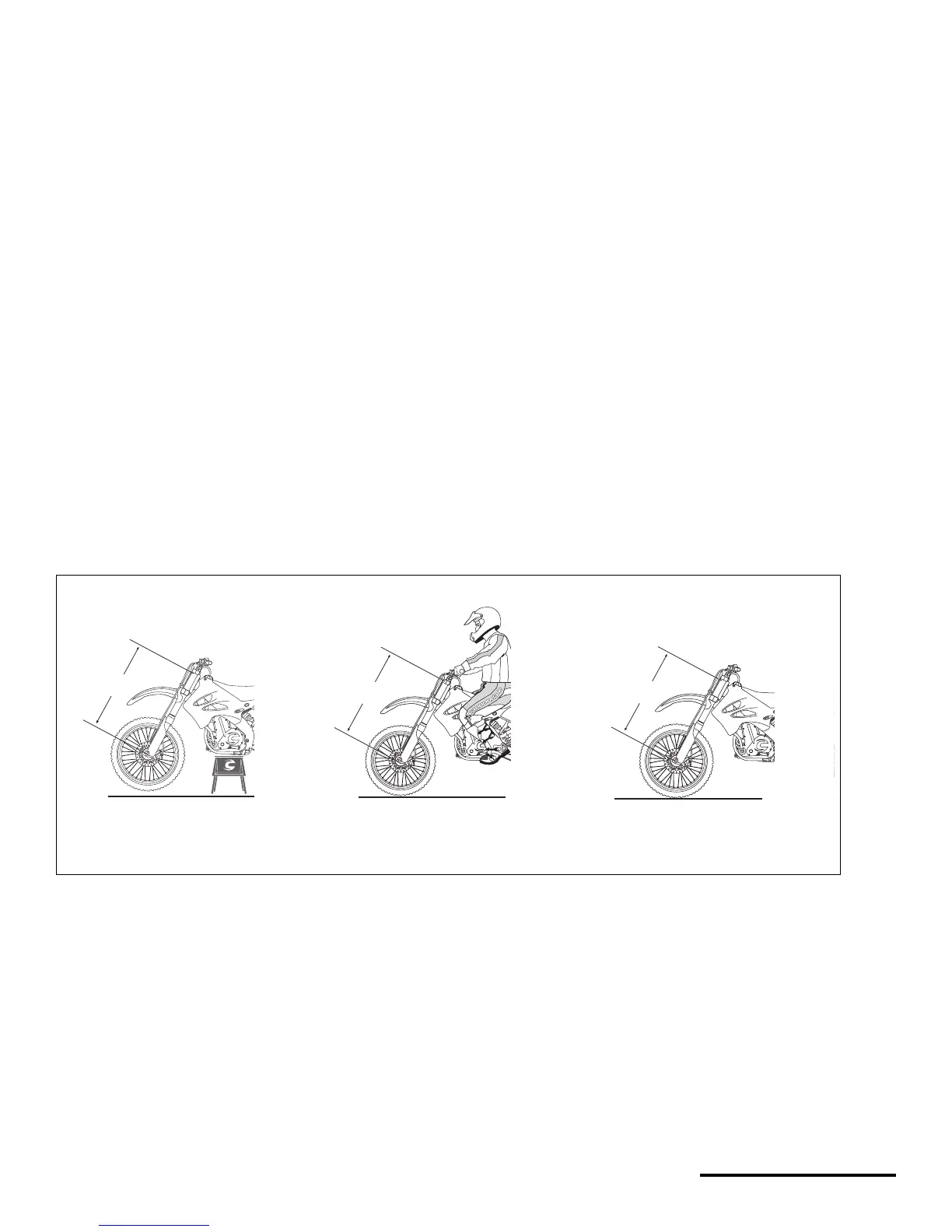 2. Take the vehicle off the stand. With rider in full gear seated on the vehicle with feet on the footpegs, repeat