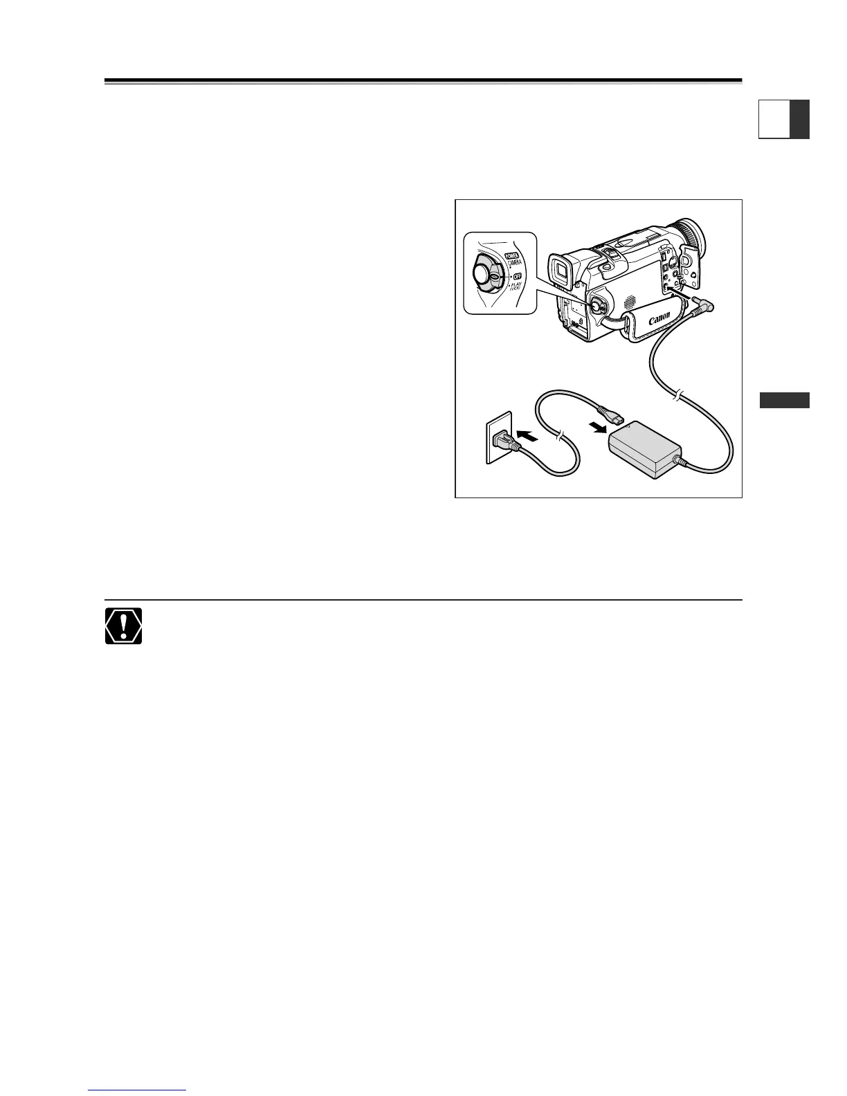 ❍ Turn off the camcorder before connecting or disconnecting the power adapter.