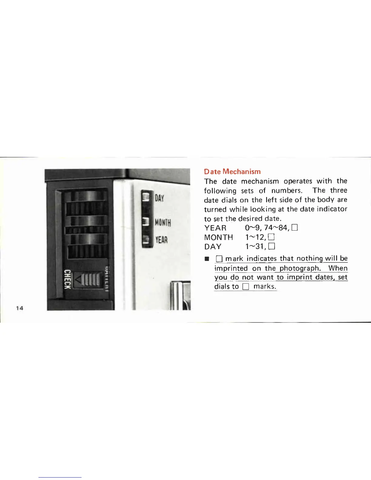 Canon 110 ED - Date Mechanism; Setting and Disabling Date Imprinting
