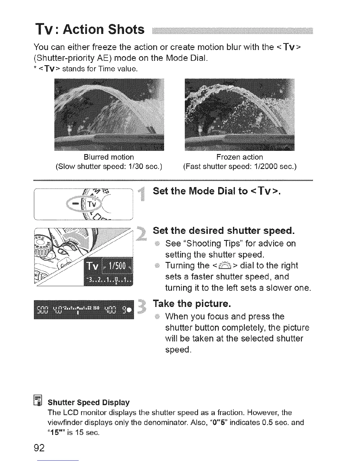 (Slow shutter speed: 1/30 sec.) (Fast shutter speed: 1/2000 sec.)