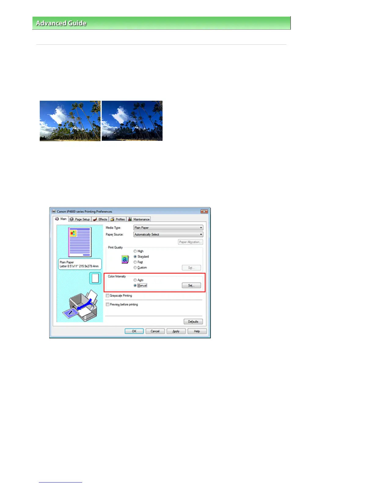 Select Manual for Color/Intensity on the Main tab, and click Set....