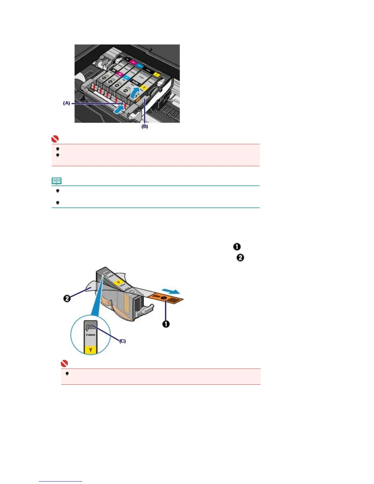 Do not remove two or more ink tanks at the same time. Be sure to replace ink tanks one by one