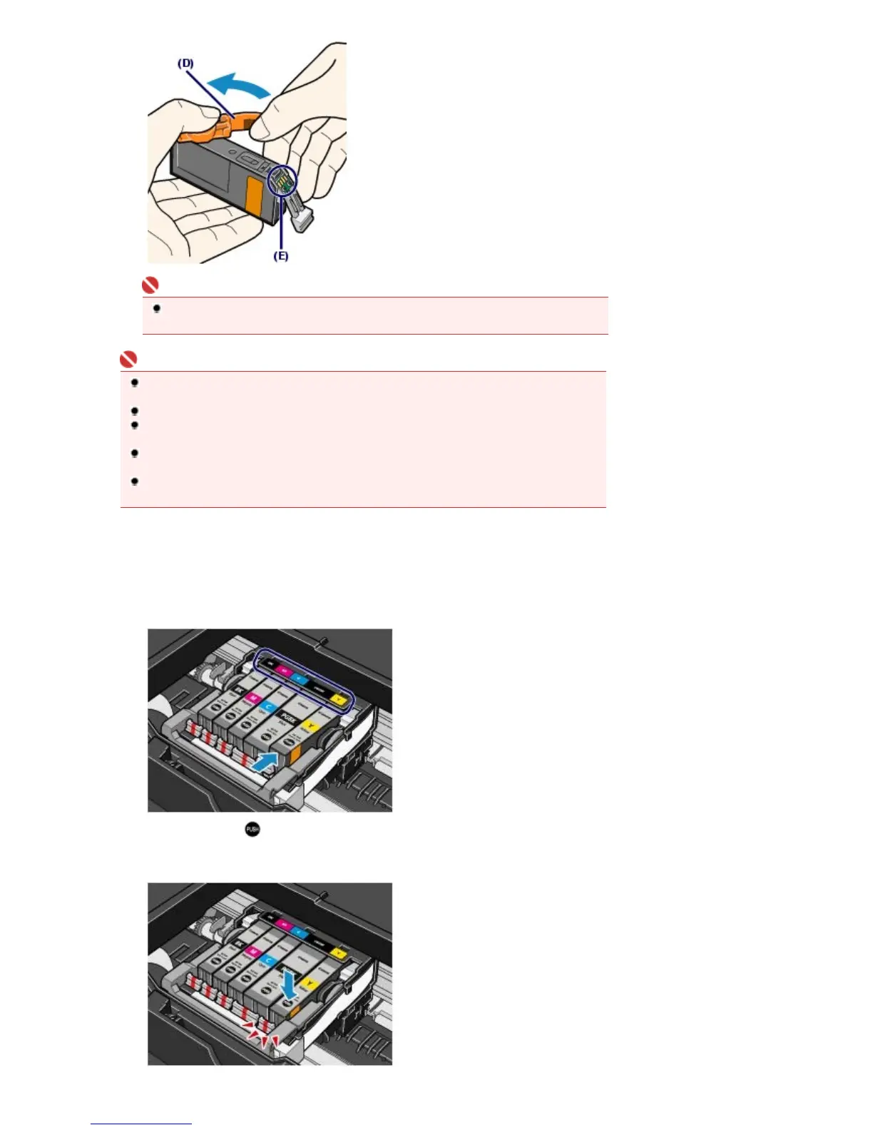 Do not touch the electrical contacts (E) on the ink tank. It can cause the printer to