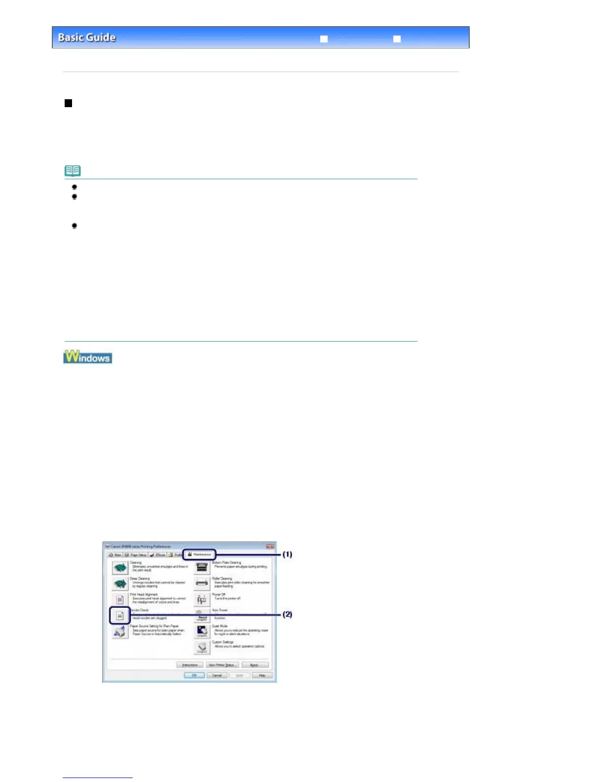 Print the nozzle check pattern to determine whether the ink ejects properly from the print head nozzles.