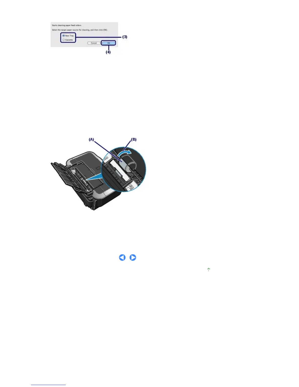 If the problem is not resolved after cleaning the Paper Feed Roller (A) in the Rear Tray as described
