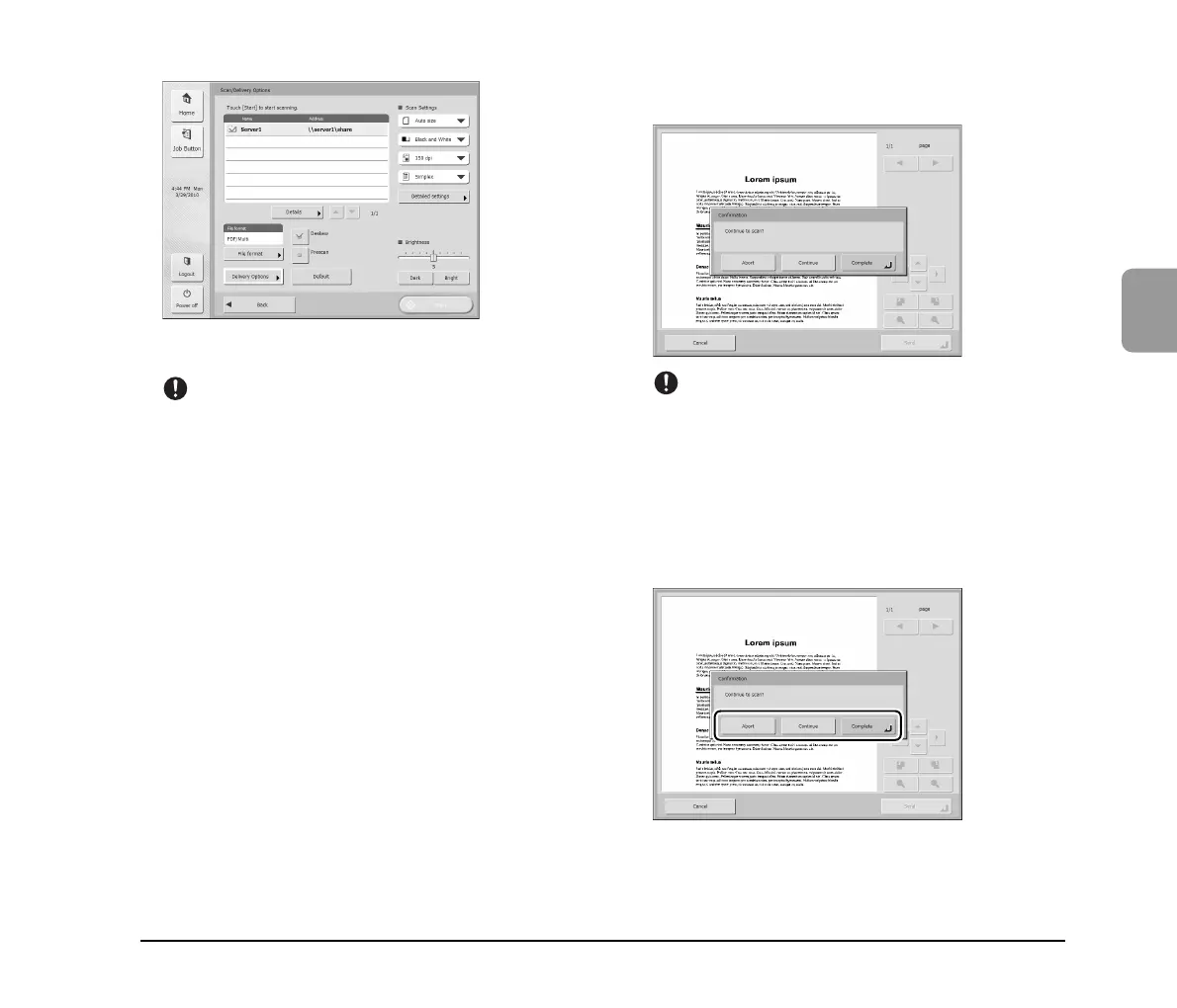 • Press [Abort] to cancel the scanned images and return to the