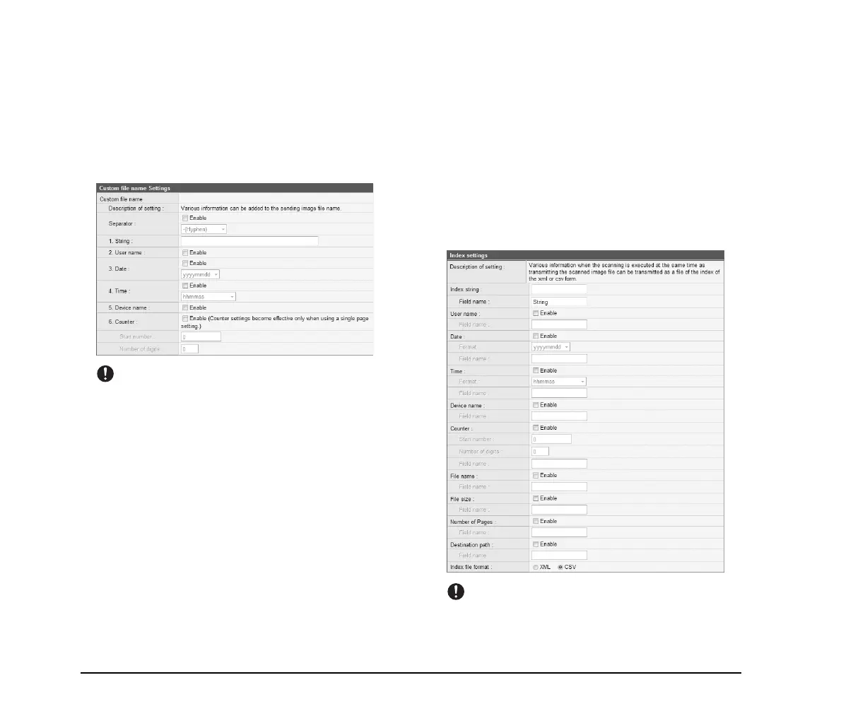 The following characters cannot be used to set the custom file