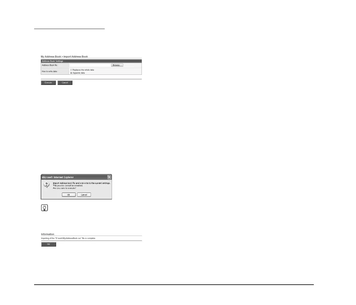 • Appends data: Adds the imported address book data to